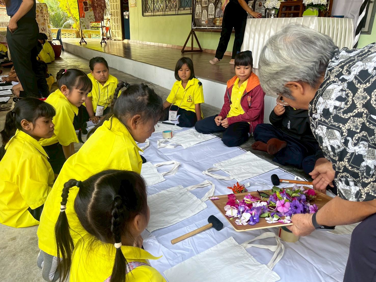 ☘️ ภายใต้หัวข้อ "สร้างสรรค์ผลงานจากภูมิปัญญาภายใต้ทุนทางธรรมชาติ ด้วยกิจกรรมภูมิปัญญาสร้างสรรค์ E-co Print ตอกมือ เรียนรู้ ผ่าน การสืบสานงานศิลปะด้วยหัตถกรรมทางชุมชน"
