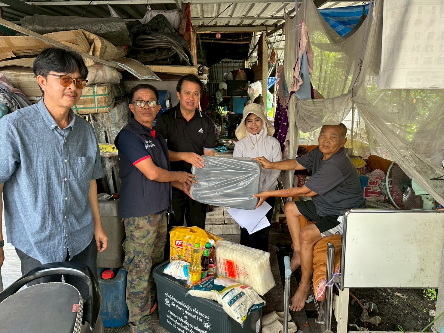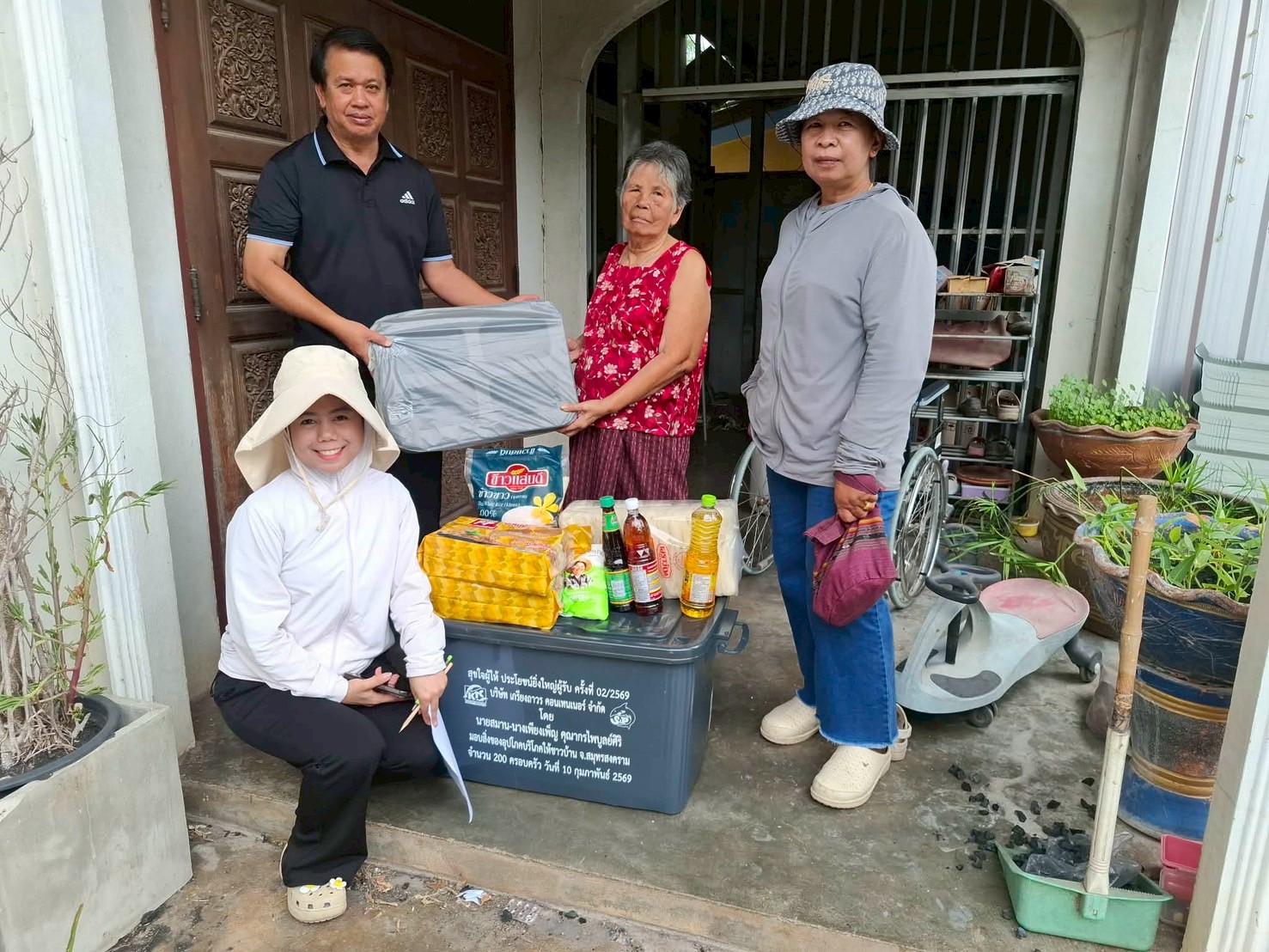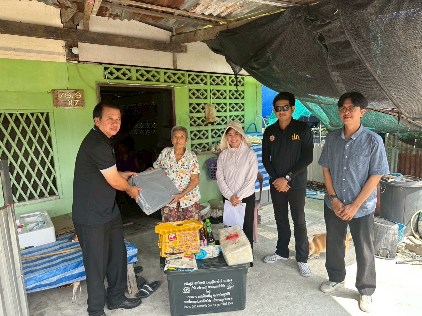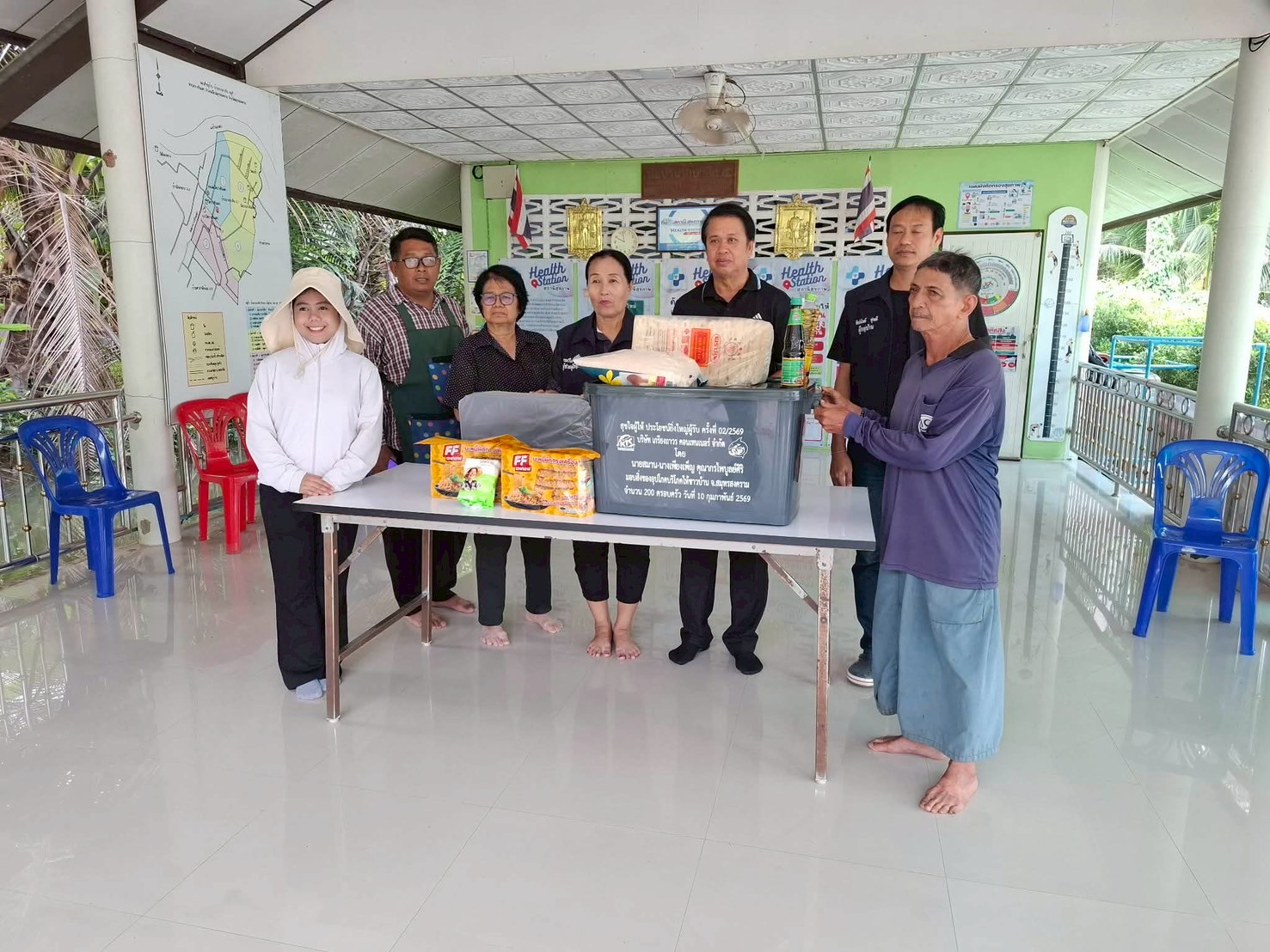 ลงพื้นที่มอบกล่องพลาสติกบรรจุสิ่งของอุปโภค บริโภค และเก้าอี้สุขาพลาสติก