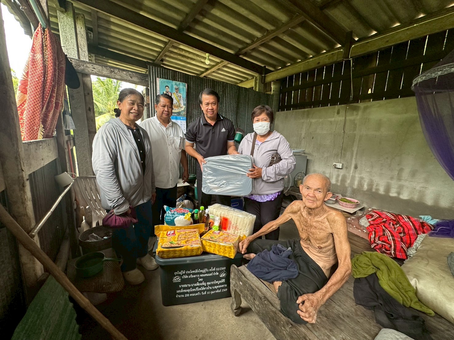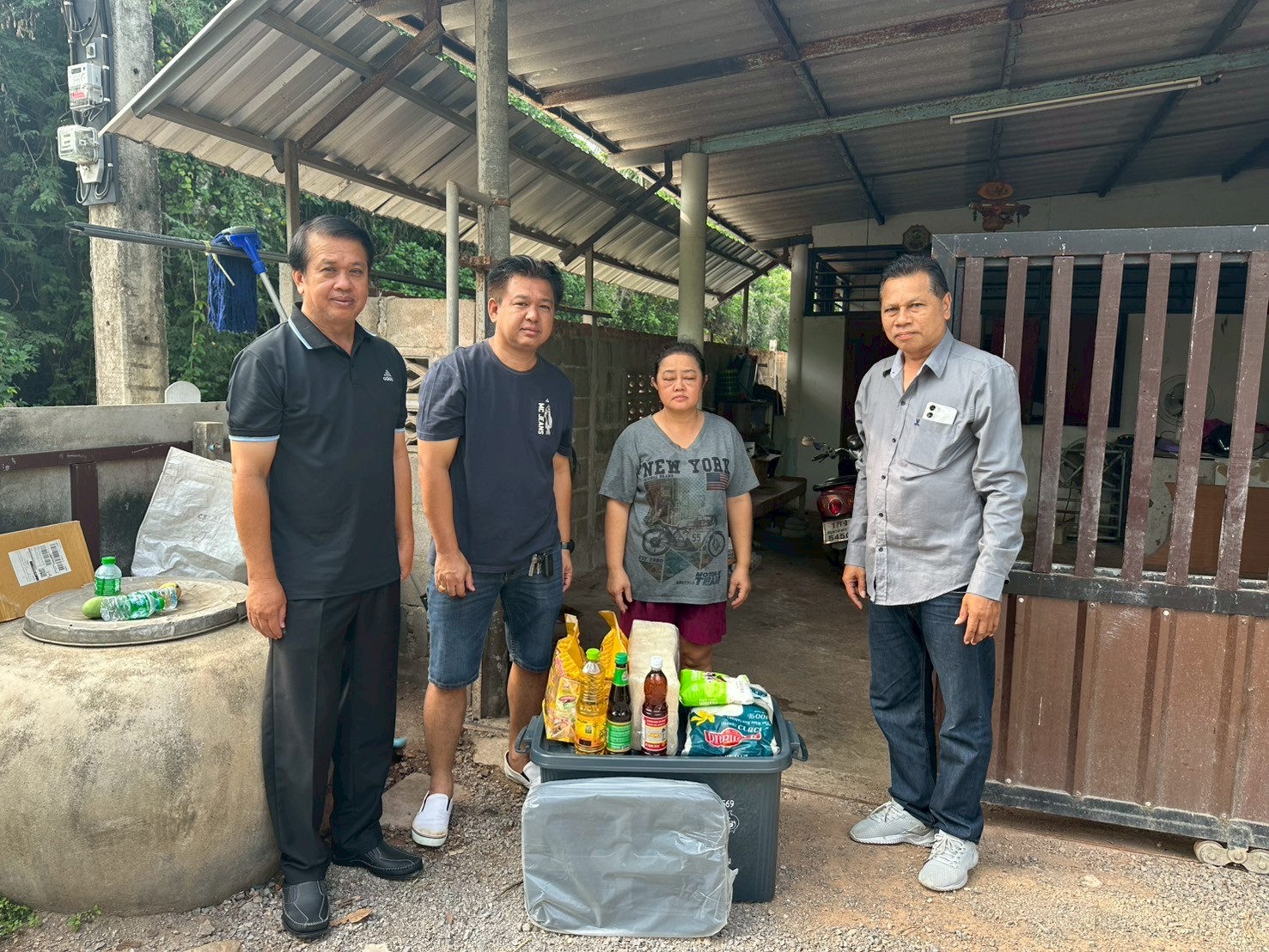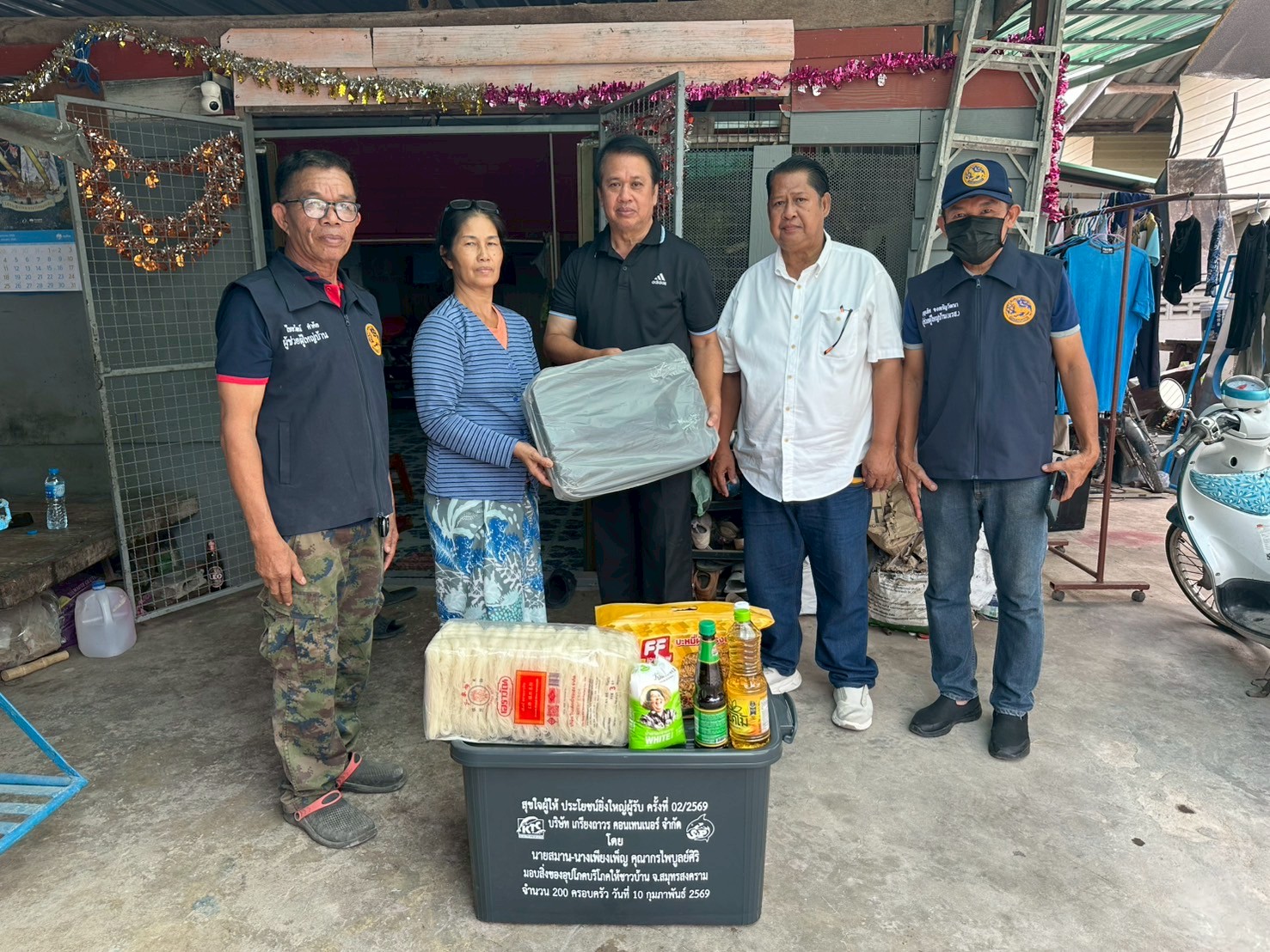 ลงพื้นที่มอบกล่องพลาสติกบรรจุสิ่งของอุปโภค บริโภค และเก้าอี้สุขาพลาสติก