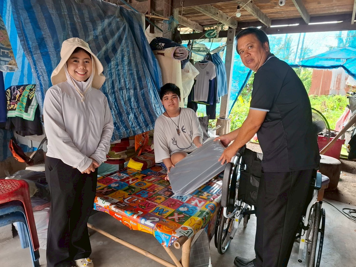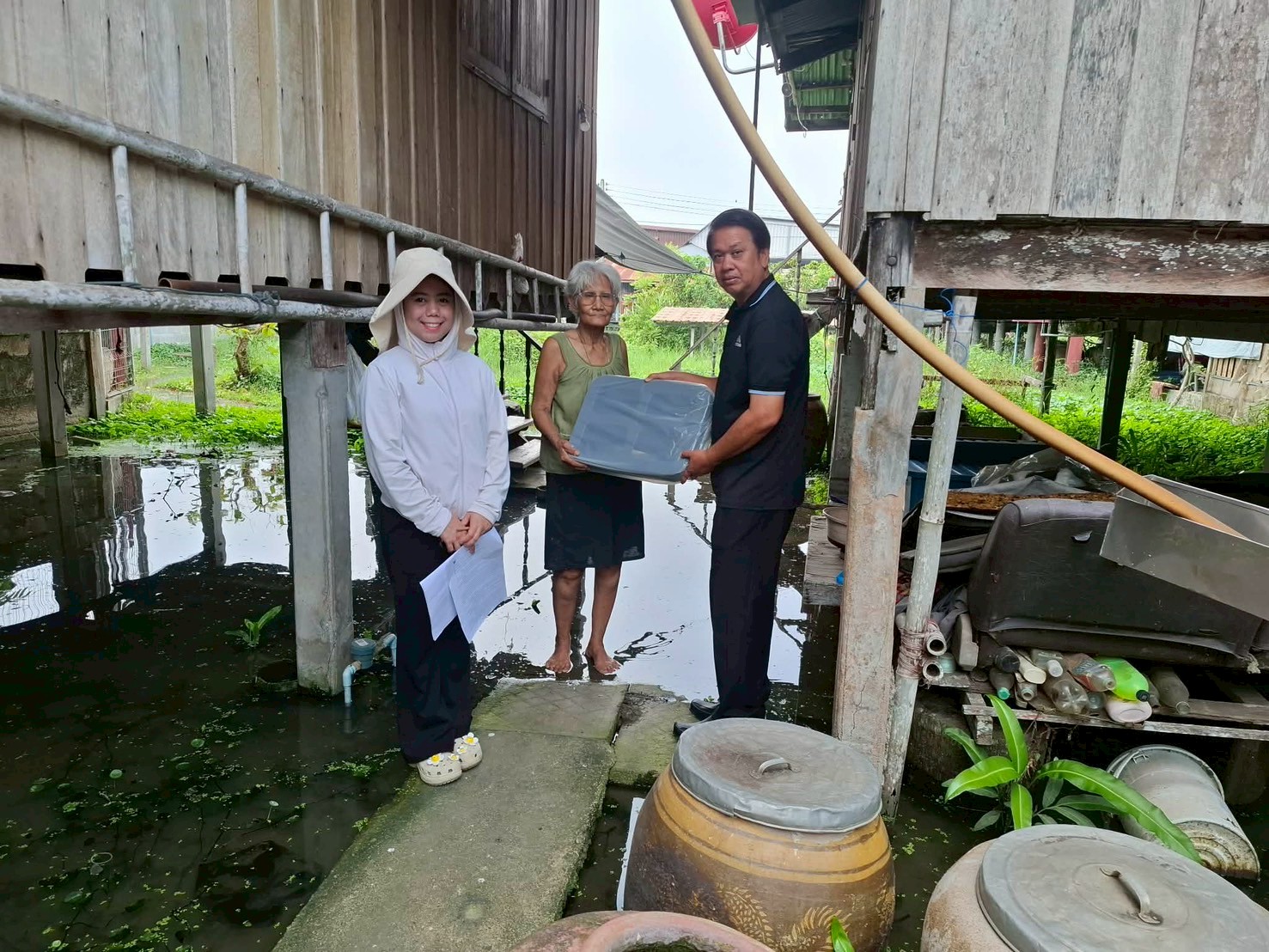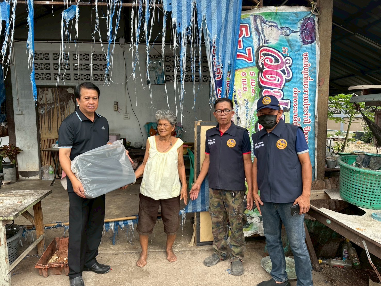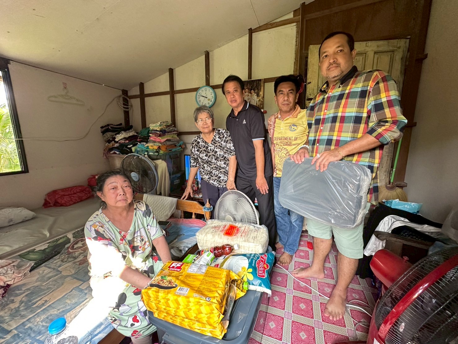 ลงพื้นที่มอบกล่องพลาสติกบรรจุสิ่งของอุปโภค บริโภค และเก้าอี้สุขาพลาสติก