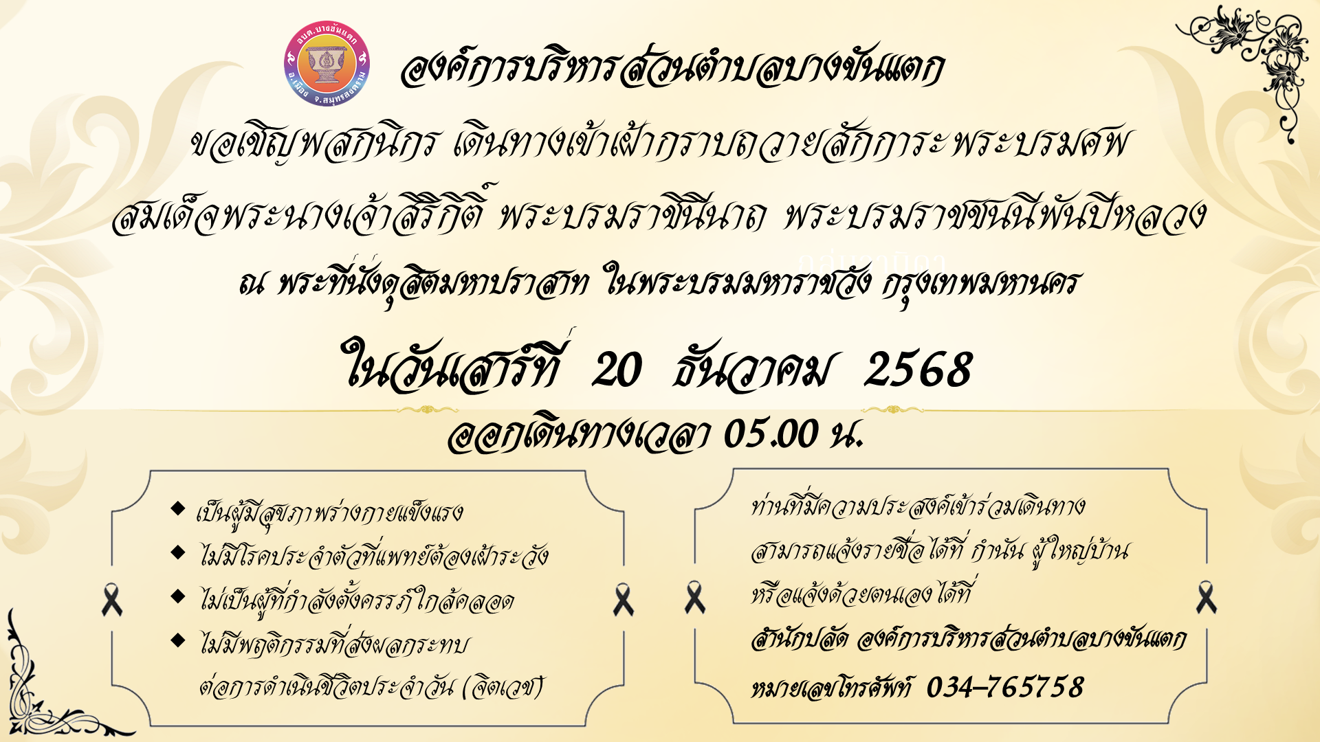 เชิญชวนประชาชน เดินทางเข้าเฝ้ากราบถวายสักการะพระบรมศพสมเด็จพระนางเจ้าสิริกิติ์ พระบรมราชินีนาถ พระบรมราชชนนีพันปีหลวง |
