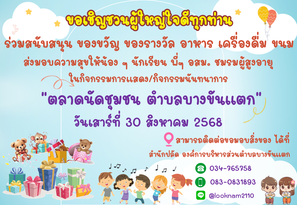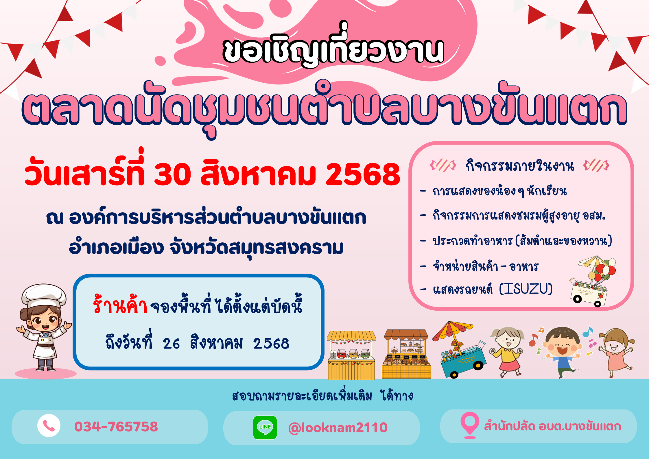 ขอเชิญเที่ยวงาน ตลาดนัดชุมชนตำบลบางขันแตก