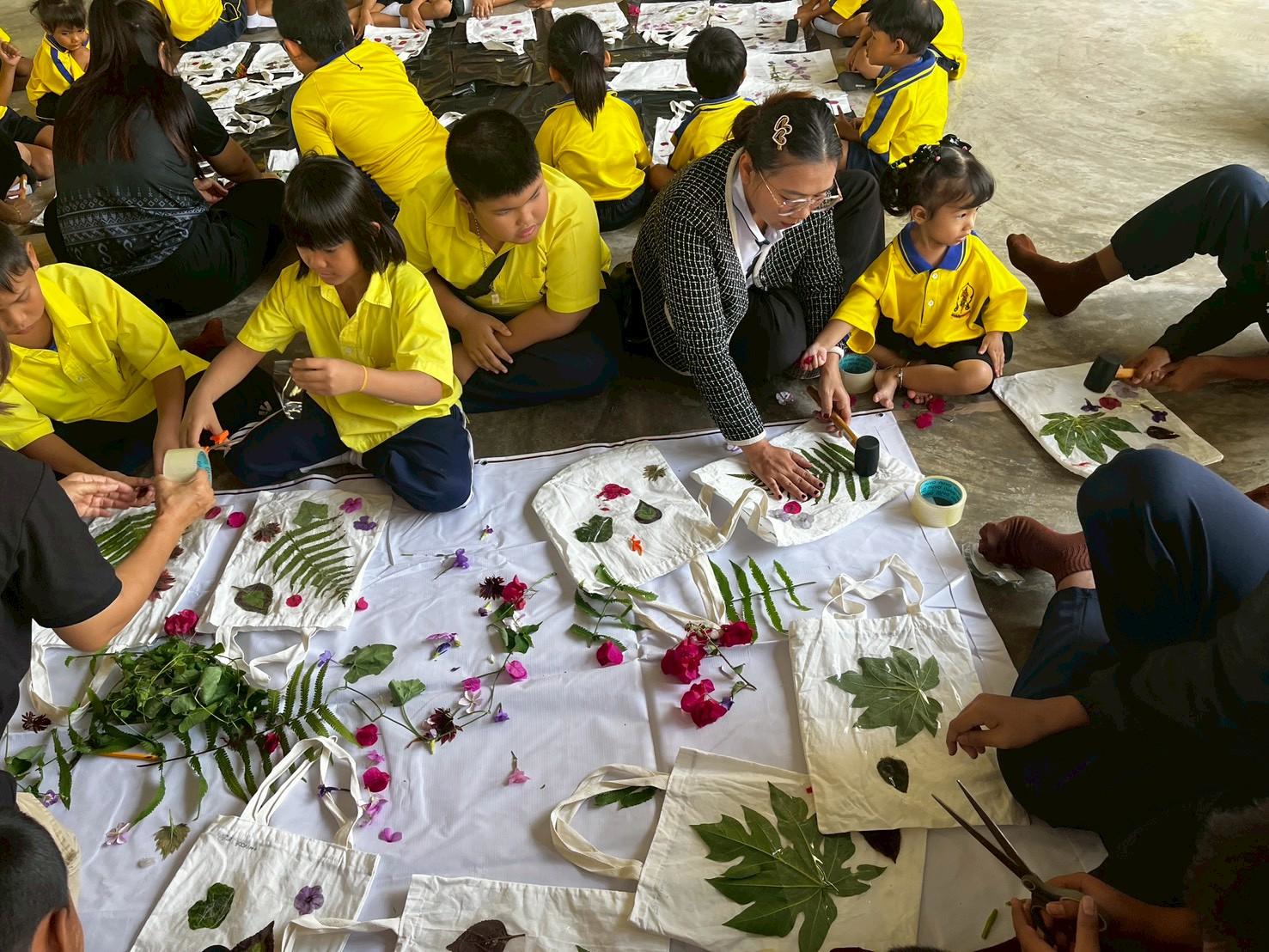 ☘️ ภายใต้หัวข้อ "สร้างสรรค์ผลงานจากภูมิปัญญาภายใต้ทุนทางธรรมชาติ ด้วยกิจกรรมภูมิปัญญาสร้างสรรค์ E-co Print ตอกมือ เรียนรู้ ผ่าน การสืบสานงานศิลปะด้วยหัตถกรรมทางชุมชน"