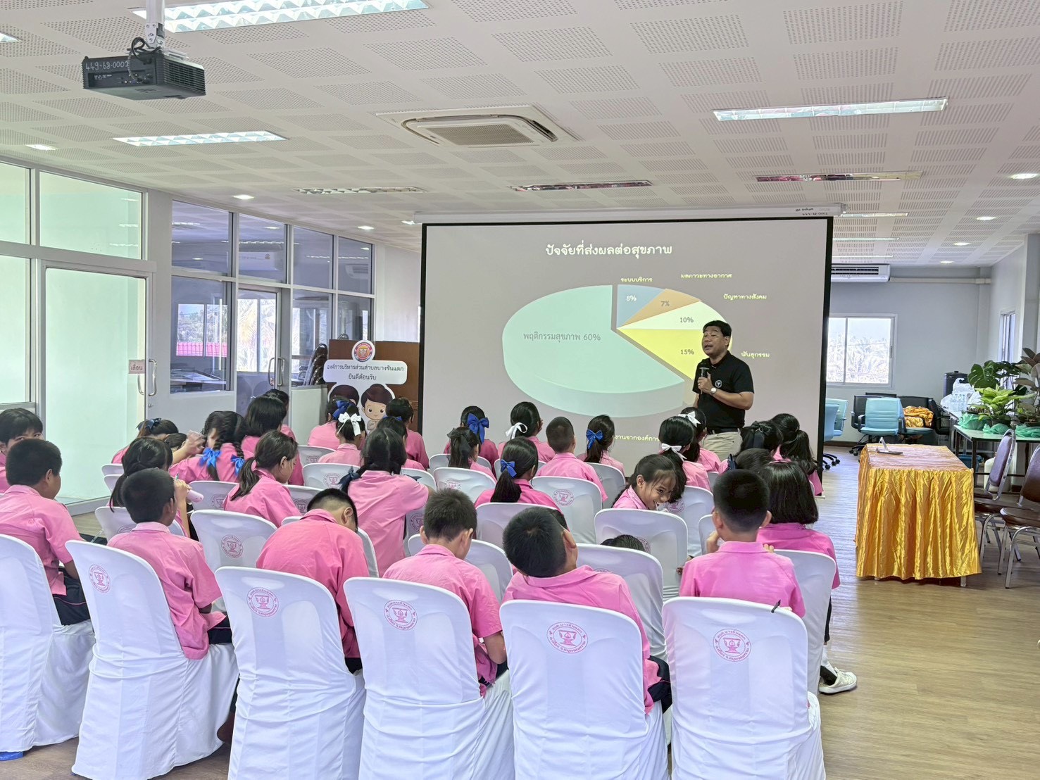 🧑🏫 โดยได้รับเกียรติจาก ดร.อุทิศ ดวงผาสุข นักวิชาการสาธารณสุขชำนาญการพิเศษ และเจ้าหน้าที่จากสำนักงานทรัพยากรธรรมชาติและสิ่งแวดล้อมจังหวัดสมุทรสงคราม เป็นวิทยากรถ่ายทอดประสบการณ์ ให้ความรู้แก่กลุ่มเป้าหมาย ประกอบด้วย น้อง ๆ นักเรียน พร้อมคณะครูจากโรงเรียนวัดธรรมสถิติ์วราราม และบุคลากรในสังกัดองค์การบริหารส่วนตำบลบางขันแตก