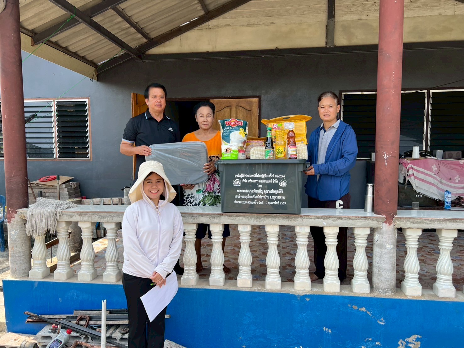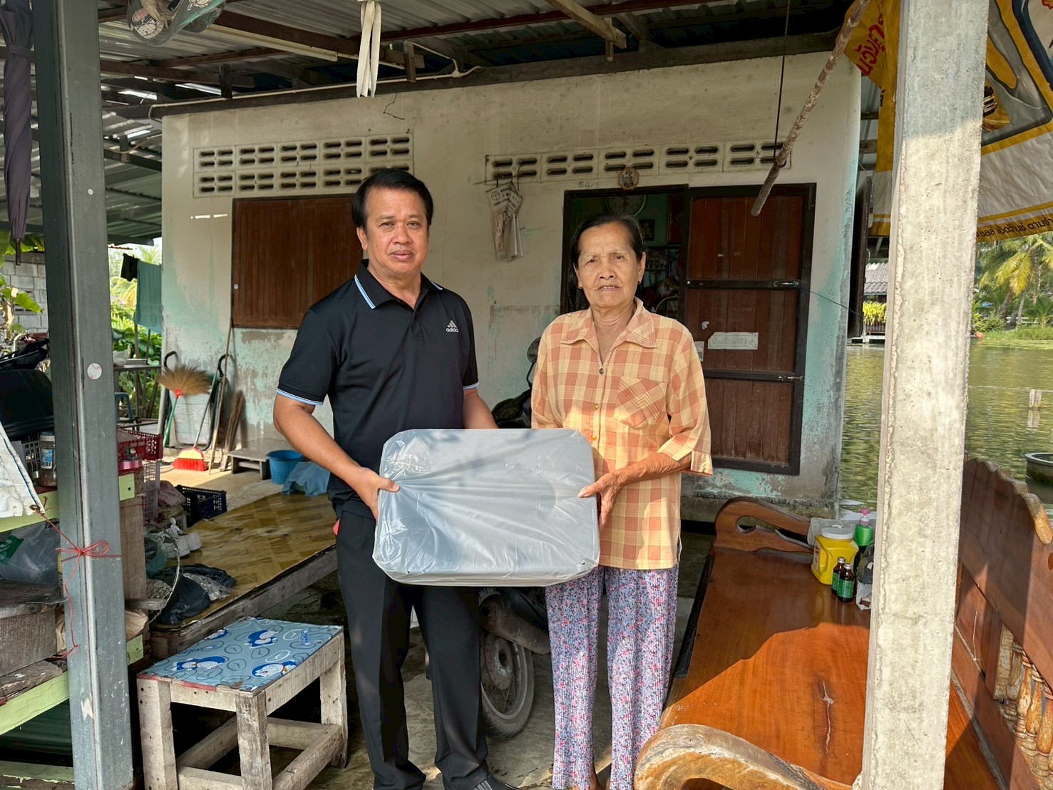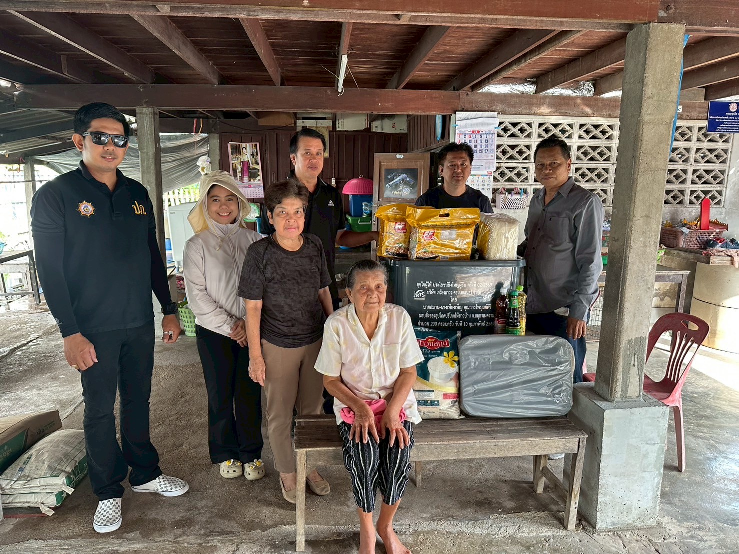 ลงพื้นที่มอบกล่องพลาสติกบรรจุสิ่งของอุปโภค บริโภค และเก้าอี้สุขาพลาสติก