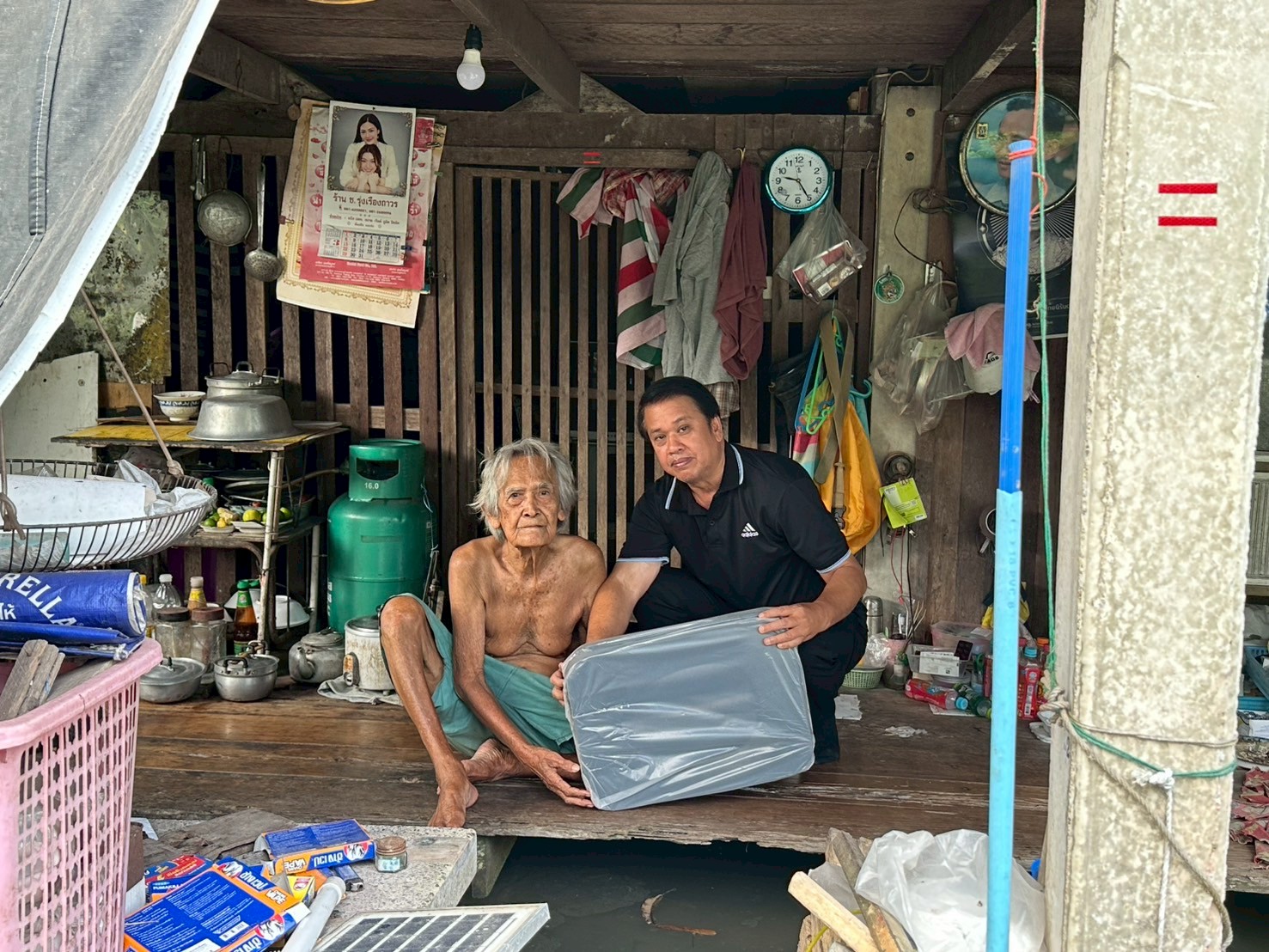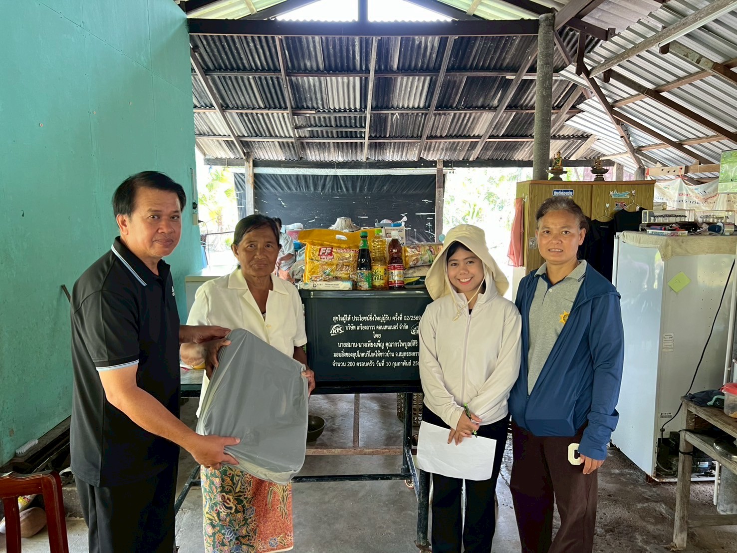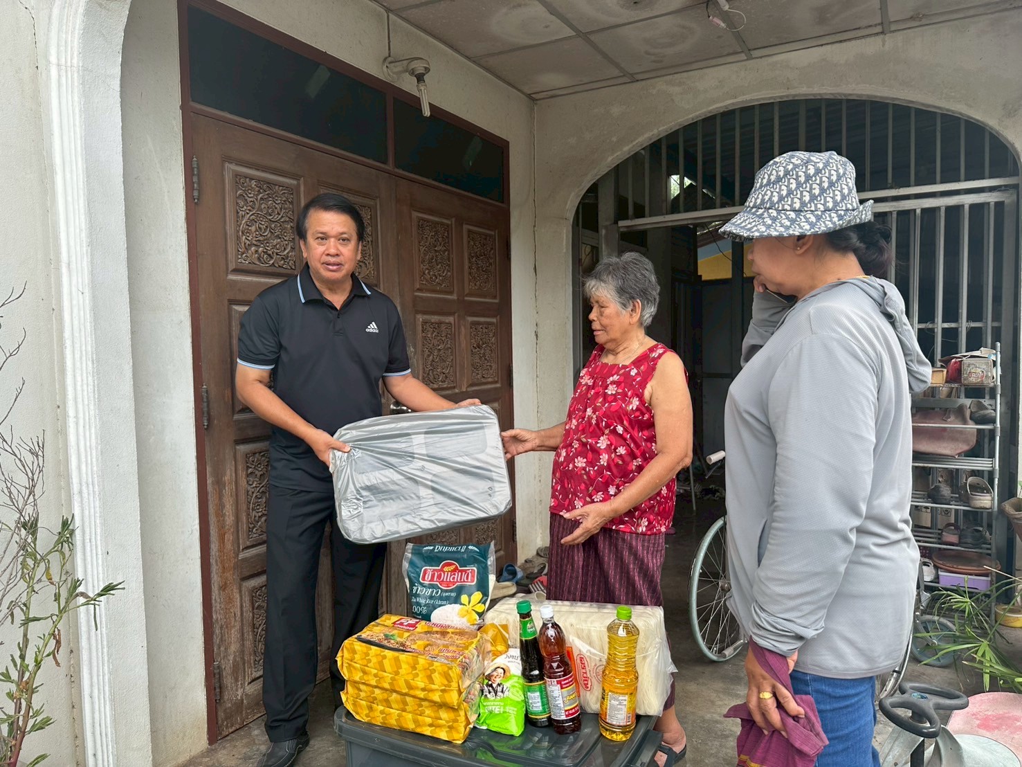 ลงพื้นที่มอบกล่องพลาสติกบรรจุสิ่งของอุปโภค บริโภค และเก้าอี้สุขาพลาสติก