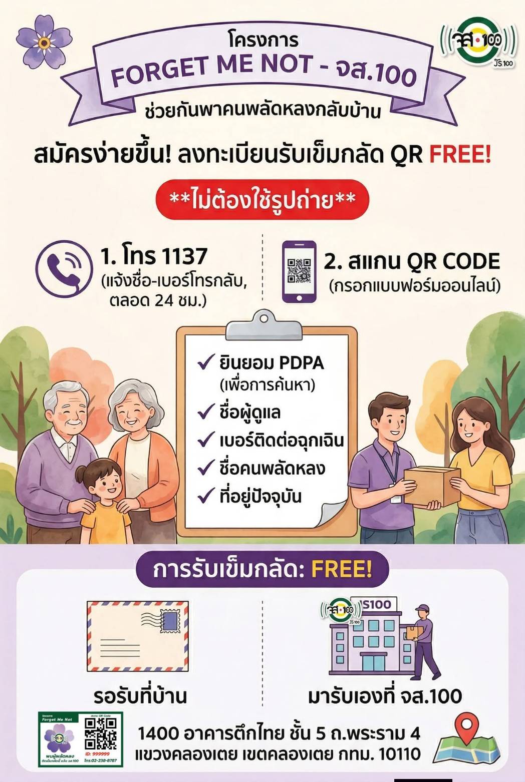 โครงการ "Forget me not" ผู้สูงอายุ หรือญาติผู้ใหญ่ที่มีความเสี่ยงจะพลัดหลงหลงลืม |