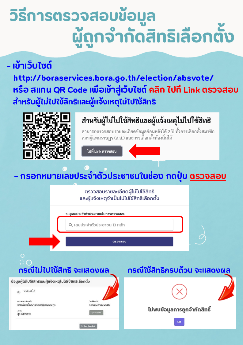 วิธีการตรวจสอบข้อมูลผู้ถูกจำกัดสิทธิเลือกตั้ง |