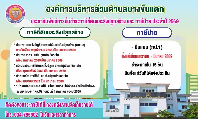 ประชาสัมพันธ์การยื่นชำระภาษีที่ดินและสิ่งปลูกสร้าง และ ภาษีป้าย ประจำปี 2569 |