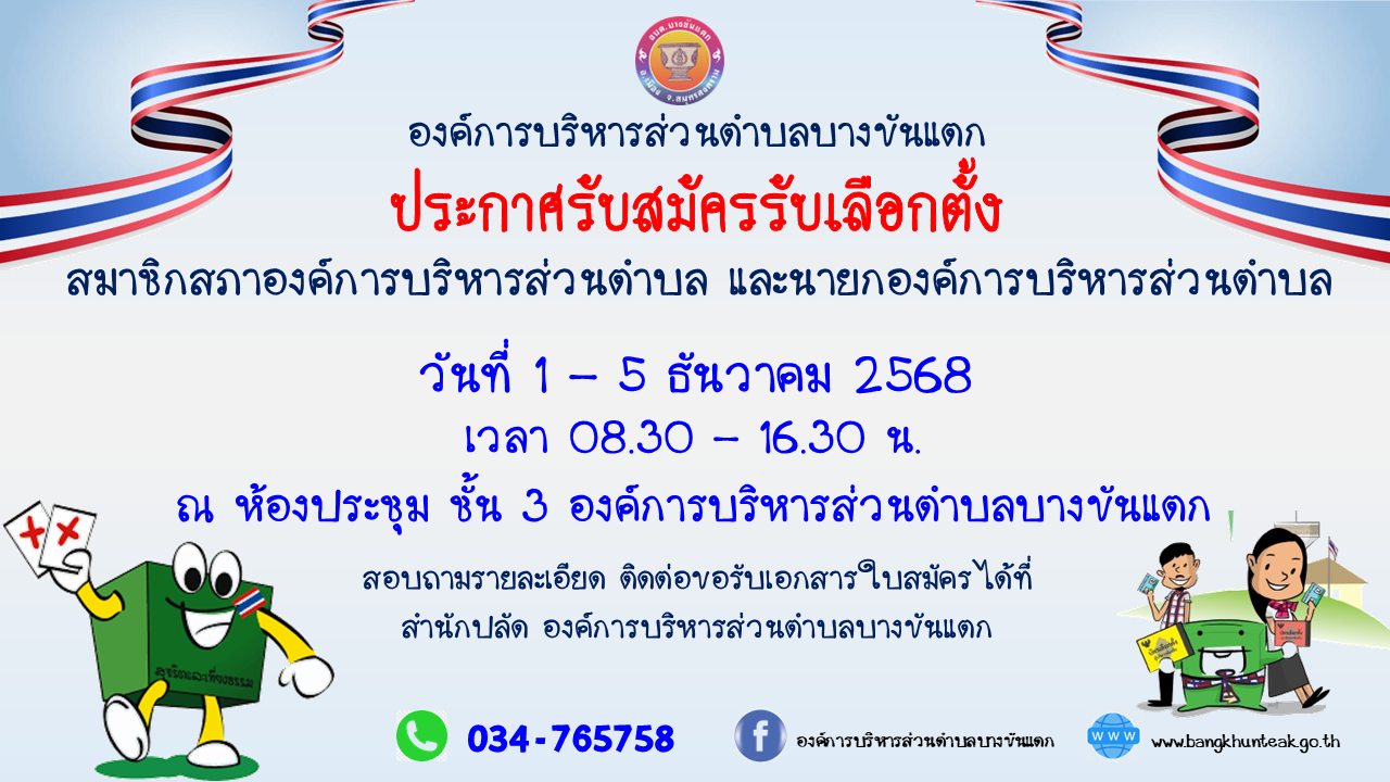 ประกาศรับสมัครรับเลือกตั้ง สมาชิกสภาองค์การบริหารส่วนตำบล และนายกองค์การบริหารส่วนตำบล